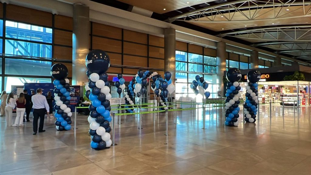 Ejecución del proyecto: Este evento implicó la colocación de varias columnas de globos en 2 localizaciones distintas, el trabajo de coordinación fue arduo pero conseguimos mantener la atención del viajero hacia la marca de manera constante. Además, contamos con botellas de agua para todo el pasaje.